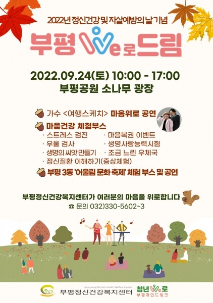 이번 부평마음위로 행사는 매년 9월 10일 ‘정신건강 및 자살예방의 날’을 기념해 자살예방과 생명존중 문화를 확산하고 지친 구민의 마음을 위로하기 위해 마련했다.