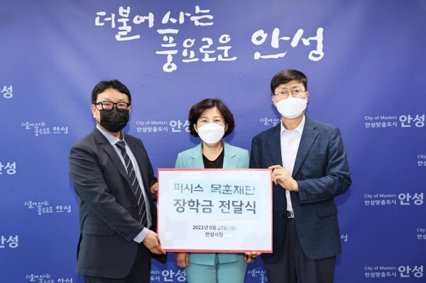 퍼시스 목훈재단은 안성 소재 고등학생 중 시의 협조를 통해 선발된 학생 5명에게 연간 120만원의 학자금을 지원할 예정이다.