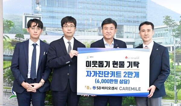 같은 날 에스디바이오센서㈜에서는 어려운 이웃을 위해 전달해 달라며 자가진단키트 2만개를 전달했다.