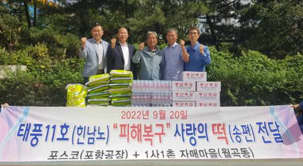 이번 방문은 경북 포항지역을 휩쓸고 간 태풍 힌남노로 막대한 피해를 입은 포스코 공장 복구를 위해 안간힘을 쏟고 있는 직원들에게 월곡1동 지역주민들이 쌀과 사랑의 떡을 전달하며 위로의 마음을 전했다.
