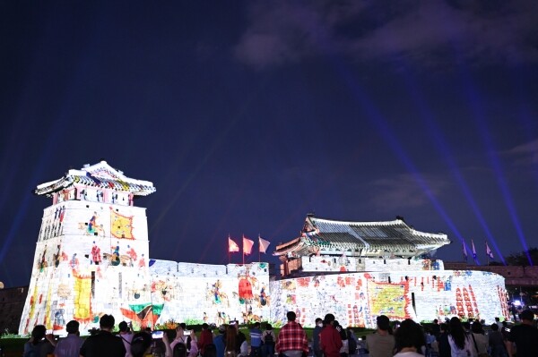 화홍문에서는 ‘개혁 신도시 수원화성’을 주제로 4개의 미디어파사드 작품을 연작 형태로 선보인다.