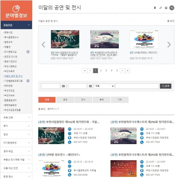 이번 개편으로 시민이 각 기관별 홈페이지를 일일이 방문하지 않아도 부천시 홈페이지만 방문하면 기관별 공연 정보를 한눈에 파악할 수 있게 됐다.