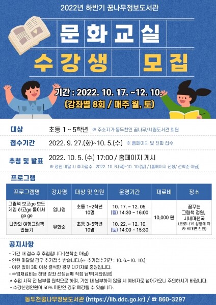 동두천꿈나무정보도서관 하반기 문화교실 운영