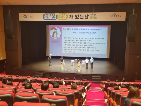 특히 이날 행사는 국가인권위원회의 인권선언을 위한 세계인들의 노력에 관한 ‘세계인권선언의 탄생’ 영상 관람, 공직자의 청렴의무 함양을 위한 뮤지컬 ‘청렴한 삼시세끼’ 등 다양한 청렴교육의 장을 마련했다.