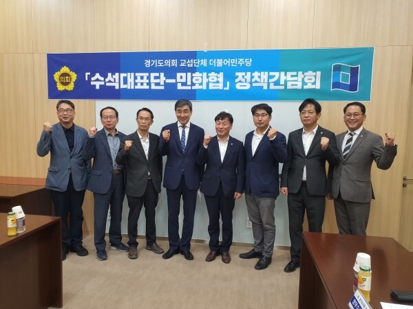 정담회에는 남종섭 대표의원, 조성환 총괄수석, 고은정 기획수석, 안광률 정책위원장, 박세원 정무수석 등이 참석했고 민화협 측에서는 이종걸 대표상임이사, 박병규 상임집행위원장, 허권 통일위원장, 이시종 사무차장 등이 함께했다.