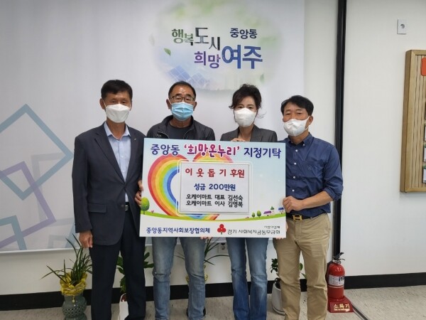 OK마트는 매년 성금과 물품후원으로 이웃을 위한 따듯한 온정을 베풀어 오고 있으며 금번에도 김선숙 대표와 김영복 이사가 각각 100만원을 기부했다, 김선숙 오케이마트 대표는 “중앙동에 기초생활수급자분들이 많은 것으로 알고 있는데 어려운 분들에게 작은 도움이 되기를 바란다”고 말했으며 김영복 이사는 “물가상승 등으로 어려움은 있지만 지역에 계신 어려운 분들에게 도움을 드릴 수 있어 기쁘다”고 말했다.