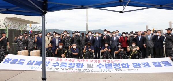 이들은 무더운 날씨에도 아랑곳없이 모터보트 등 다수의 장비를 이용해 삼목항 수중·수변 환경 정비에 힘썼다.