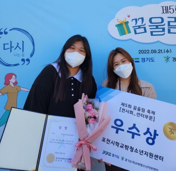 센터는 환경 보호를 테마로 하는 캠페인 활동 사진으로 전시회 센터 부문 우수상을 받았으며 2019년부터 꾸준히 포천시 학교 밖 청소년들을 위해 대학생 멘토로 활동한 전성주 선생님의 사례가 멘토 수기 부문에서 우수상을 수상했다.