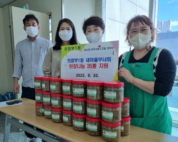 정영민 의정부1동장은 “꾸준히 나눔 활동에 앞장서주시는 새마을부녀회에 감사드리며 정성이 가득 담긴 된장은 지역 내 홀로사는 어르신, 장애인가구 등 저소득 취약계층에 소중히 전달하겠다”고 밝혔다.