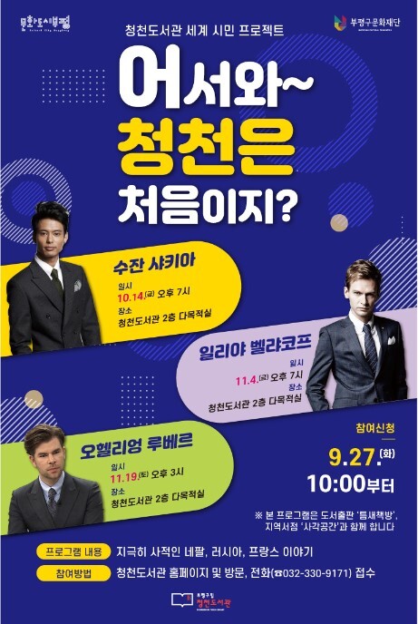 참여 신청은 청소년 이상 지역주민이라면 누구나 가능하며 청천도서관 누리집 및 전화로 접수할 수 있다.