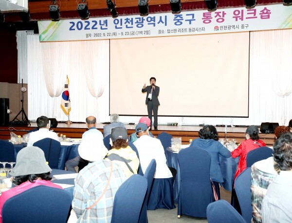 김정헌 구청장은 “취임 이후 처음으로 통장 워크숍에 참석해 최일선에서 구정발전을 위해 일하시는 통장님들과 소통의 시간을 가져 뜻깊었다”며 “앞으로도 통장님들께서 새롭게 도약하는 중구 발전을 위해 든든한 조력자이자 동반자로서 큰 역할을 해 주시기를 부탁드린다”고 말했다.