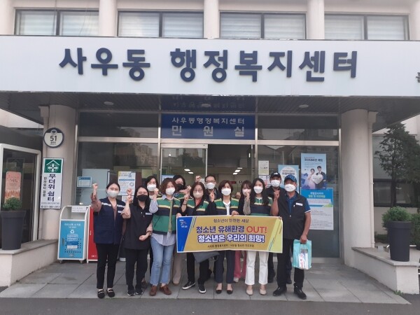 사우동행정복지센터는 청소년 지도위원과 지속적으로 청소년 유해환경 캠페인을 실시할 예정이며 유해업소 지도·점검 및 캠페인 활동을 통해 청소년의 건강한 성장을 지원하는 등 청소년 보호에 앞장설 계획이라고 전했다.