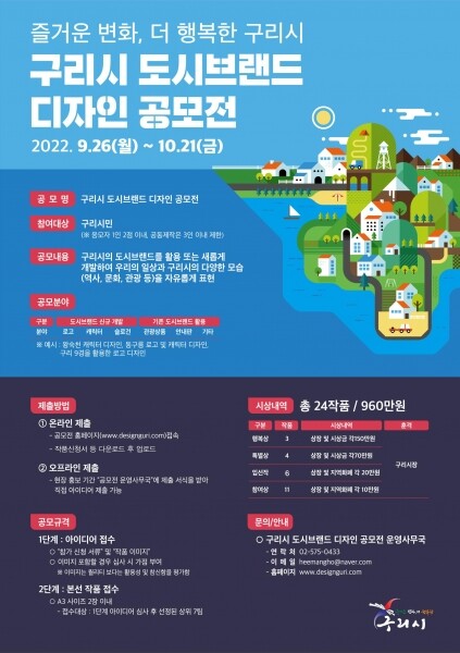 민선 8기 구리시는 이러한 문제점을 개선하기 위해 시민의 의견을 적극적으로 수렴해, 기존 일방향적인 도시브랜드 디자인 개발을 탈피하고 개발 단계부터 시민의 의견을 적극적으로 수렴하는 양 방향적인 도시브랜드 디자인 개발이 될 수 있도록 ‘구리시 도시브랜드 디자인 공모전’을 기획했다.