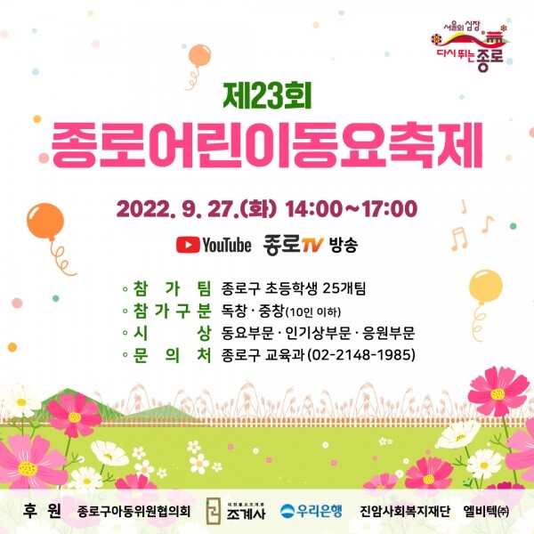 심사위원 채점으로 동요부문 수상자를, 실시간 문자 투표로 인기상 부문 수상자를 정하고 종로구청장 상장을 수여할 계획이라고 전했다.