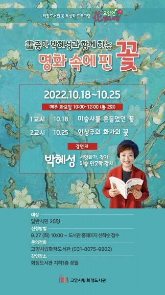 꽃을 주제로 하는 다양한 특화 프로그램을 운영해온 화정도서관의 10월 테마는 ‘미술사를 흔든 꽃, 그리고 인상주의 화가의 꽃’이다.