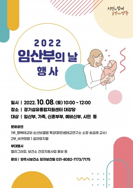 시 보건소 관계자는 “이번 행사를 통해 임신과 출산에 대한 긍정적인 인식 및 저출산을 극복하고 임산부를 존중, 배려받는 사회적 분위기 형성과 동기부여에 기여하고자 한다”며 “임산부와 가족이 함께 즐기는 축제의 장에 시민들의 많은 참여와 관심 바란다”고 말했다.