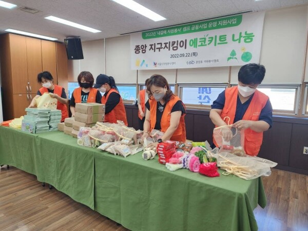 종암동 자원봉사캠프 활동가 10명이 중심이 되어 지역 내 권역별 담당자가 추천한 취약계층 30가구에 에코키트를 배부했다.