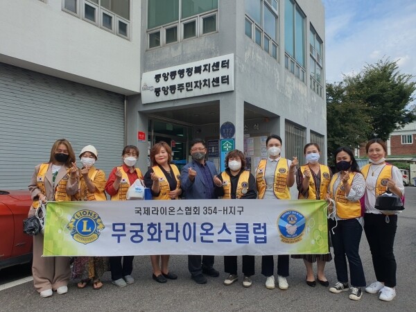 동두천시 무궁화라이온스클럽은 평소에도 백미, 송편 등 식료품 기탁을 통해 저소득층에 대한 꾸준한 관심을 보여주고 있으며 매달 중앙동 착한식당인 다복식당, 으뜸코다리냉면과 함께하는 식사 배달 봉사를 통해 지역사회 나눔 문화 확산에 기여하고 있다.