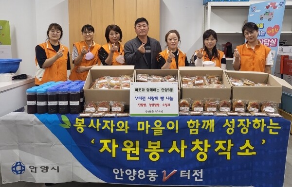 이번 나눔 사업은 안양8동 V터전이 벌이는 ‘이웃과 함께하는 행복나눔 활동’의 일환으로 관내 다자녀 가정과 경로당 어르신들을 위해 직접 만든 단팥빵, 영양찰빵 300개와 수정과를 준비했다.