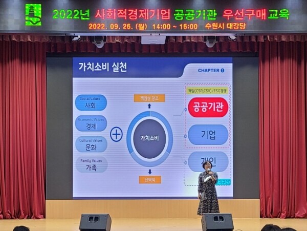 수원시는 사회적경제기업 공공기관 우선구매 제도를 담당 공직자들에게 알려 공공기관의 구매율을 높이기 위해 이날 교육을 마련했다.