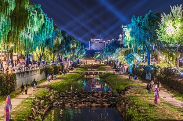 수원천 물줄기와 제방의 돌덩이, 양 천변을 연결하는 다리까지 모든 자연물과 조형물들이 미디어아트 작품에 참여하며 작품의 다채로움을 더한다.