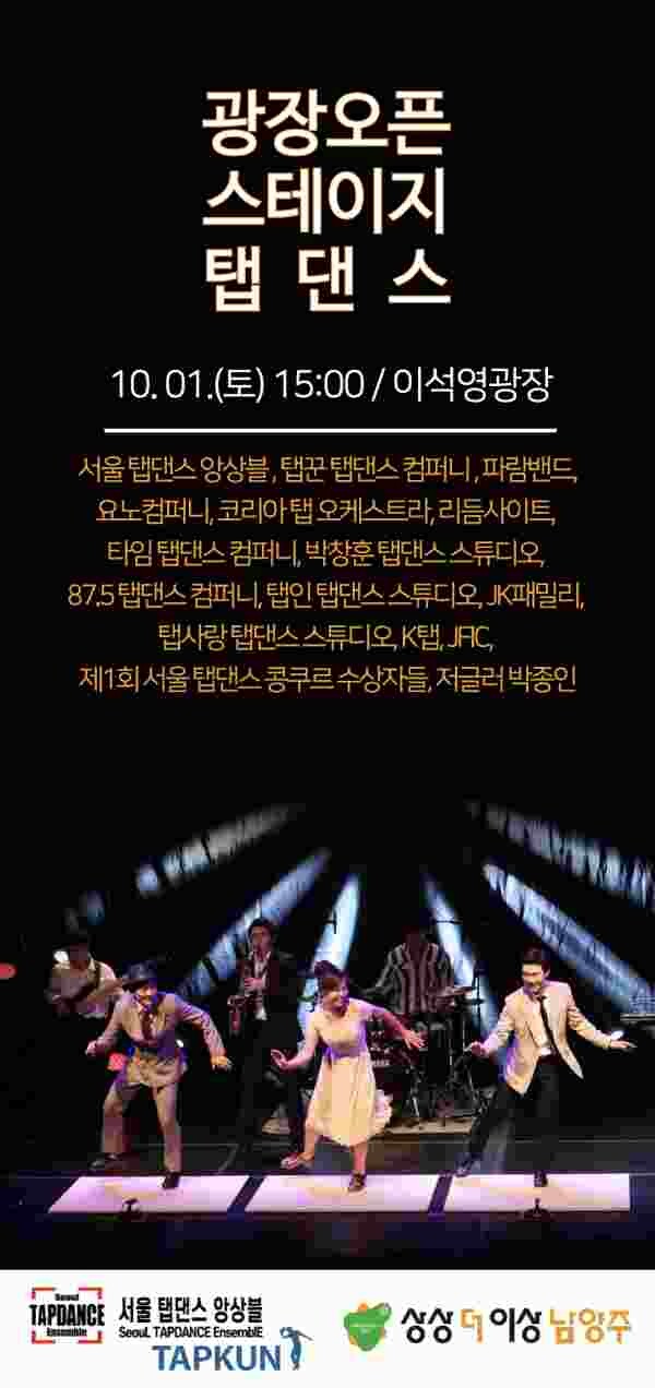 오는 10월 1일 오후 3시에 진행되는 두 번째 오픈 스테이지는 ‘탭 댄스 페스타’ 공연으로 탭퍼 1세대 김길태 예술감독을 주축으로 해 국내에서 활동하고 있는 전문 탭퍼들이 총출동한다.