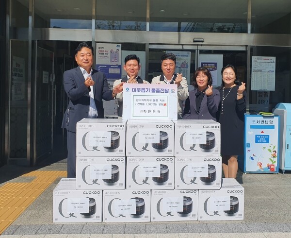 이번 전달식에서 ㈜파인엠텍은 기록적인 폭우로 피해를 입은 이재민들에게 1,300만원 상당의 전자제품을 전달했다.