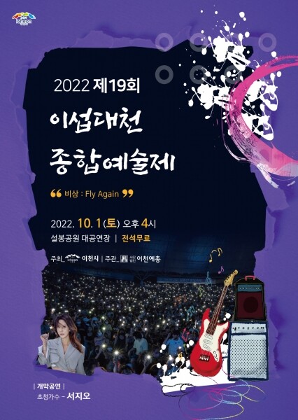 “예술의 향기로~ 비상:Fly Again”이라는 주제로 이천예총 주관으로 개최하는 이번 예술제는 시민들이 폭넓은 문화예술 공연과 전시를 접할 수 있도록 마련한 자리로 다채로운 행사와 전시에 많은 시민들의 관심과 호응을 기대하고 있다.