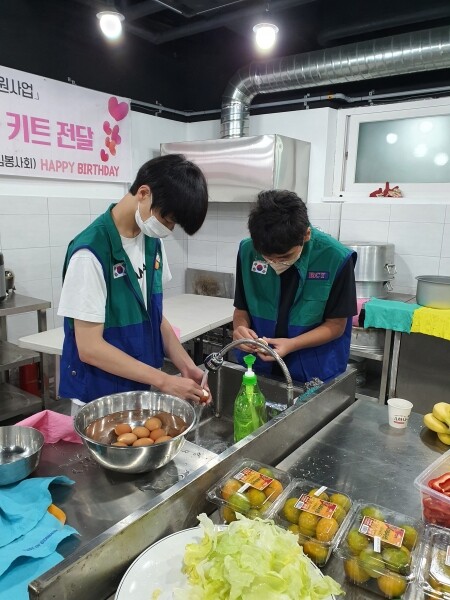 이날 활동에는 평화로RCY 청소년봉사단과 지도자 등 7명이 참여했으며 8개동에서 선정한 9월 생신을 맞은 독거어르신 6분께 직접 끓인 미역국과 샐러드, 유부초밥, 과일 케이크를 준비해 전달했다.