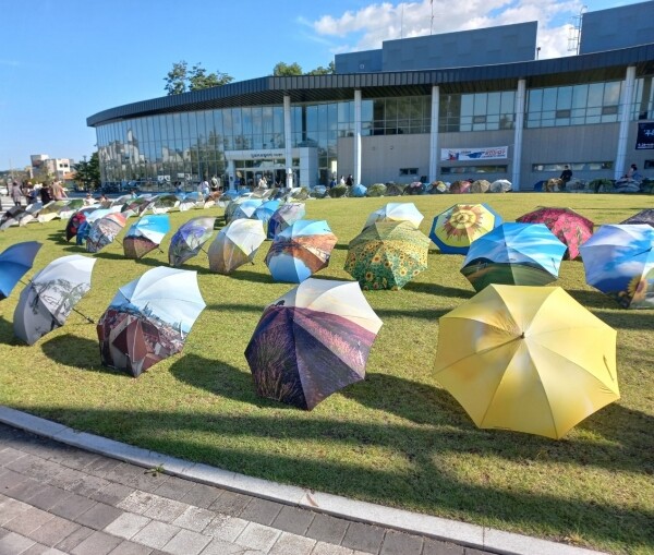 김포아트빌리지 잔디광장에서 펼쳐진 김포문인협회와 한국사진작가협회 김포지부와 협업한 ‘푸른 발자국들이 가을을 걷다’ 전은 시와 사진이 함께 프린팅된 우산 전시로 시민들의 이목을 끌며 문화예술제의 분위기를 한껏 돋았다.