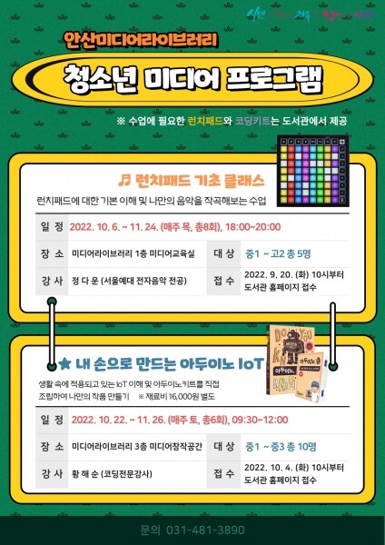 ‘런치패드 기초 클래스’는 중1~고2 학생을 대상으로 10월 6일부터 11월 24일까지 매주 목요일 오후 6시에 총 8회에 걸쳐 진행되며 런치패드에 대한 기본 이해 및 나만의 음악을 작곡해보는 시간으로 꾸며진다.