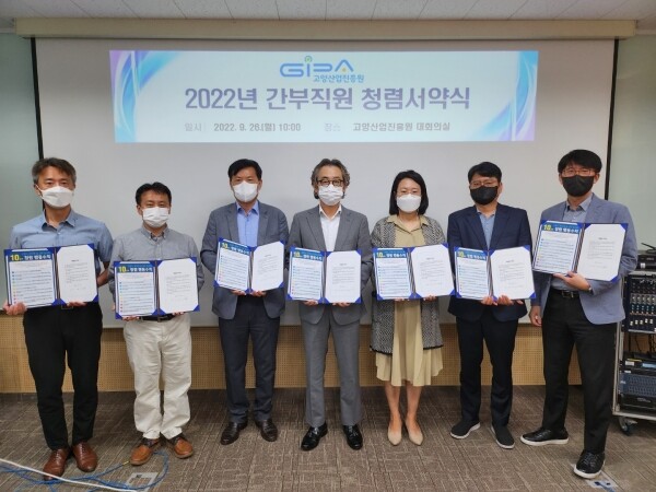 지난 8월 입사한 신규직원 4명이 ‘고양시 공직자 및 산하 임직원 10대 청렴 행동수칙’과 ‘부정청탁 및 금품등 수수 금지 서약서’에 서명하고 선서한데 이어 간부직원 청렴서약식에서는 팀장 이상 간부 전원이 참석해 청렴한 조직문화 정착을 위해 모범이 될 것을 다짐하고 법과 원칙 준수, 부패 예방, 지위 권한 남용 금지 등을 담은 ‘청렴실천서’에 서명하고 선서했다.