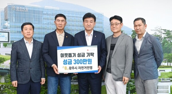 이날 기탁금은 광주시 자전거연맹에서 지난 17일에 진행한 이웃돕기 기부 라이딩를 통해 참가비 및 기부금을 모아 마련해 그 의미를 더했다.