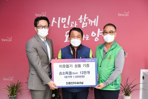 금철완 양주시 부시장은 “간편하게 들고 다니면서 사용할 수 있는 손소독겔 기탁에 감사드린다”며 “코로나19가 종식되는 날까지 양주시도 지역 내 취약계층의 방역에 사각지대가 없도록 노력을 기울이겠다”고 말했다.