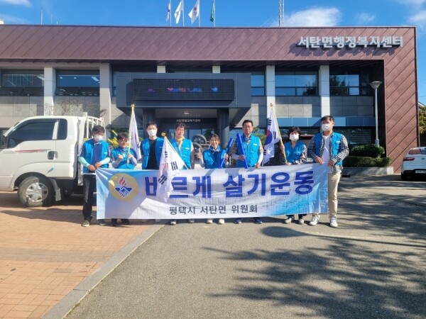 바르게살기운동 평택시협의회 이종안 회장과 서탄면 위원회 박영미 위원장은 “코로나19 및 물가상승 등으로 서민들이 힘든 시기에 국민들의 단합된 힘으로 이겨내길 기원하며 앞으로 나라사랑 정신을 고취시키기 위해 태극기 게양운동에 앞장서겠다”고 말했다.