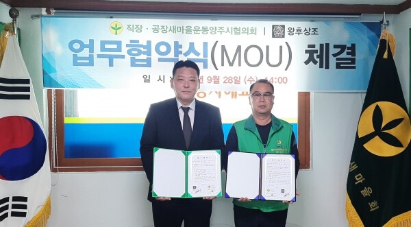 이날 협약식에는 오수영 직장·공장새마을운동양주시협의회장, 박충훈 왕후상조 대표 등이참석했다.
