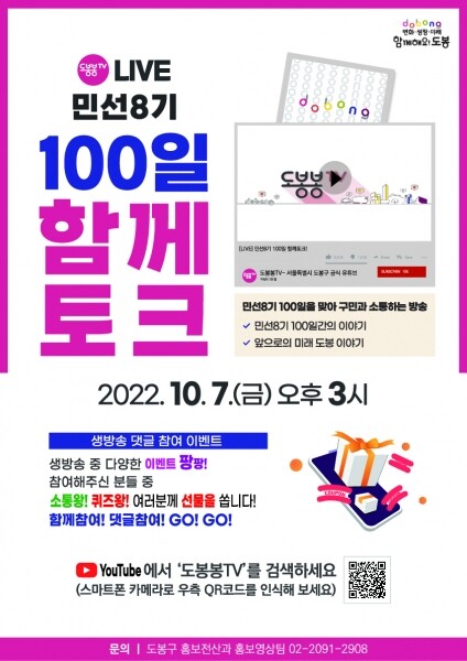 토크쇼는 도봉구 공식 유튜브 채널 ‘도봉봉TV’를 통해 생중계되며 누구나 참여할 수 있다.