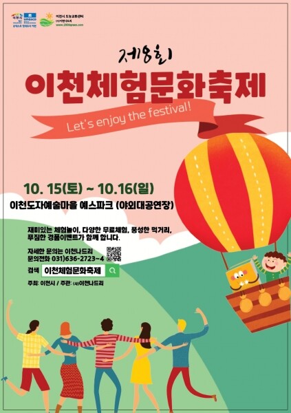 축제를 주관하는 이천나드리 이사장은 “도시와 농촌이 공존하는 이천에서 개최하는 이천체험문화축제가 아이들에게 재미있고 유익한 농촌·문화 체험의 장이 될 수 있기를 기대한다”며 “축제기간동안 아이들이 마음 놓고 뛰어놀 수 있도록 안전관리에 최선을 다하겠다”고 말했다.