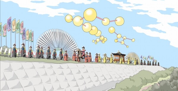 대형 조형물로 표현된 해와 달은 영원한 왕의 권위를 상징하고 왕실의 기원을 표현하고 있으며 정조대왕의 말년 호 ‘만천명월주인옹’의 의미를 담았다.