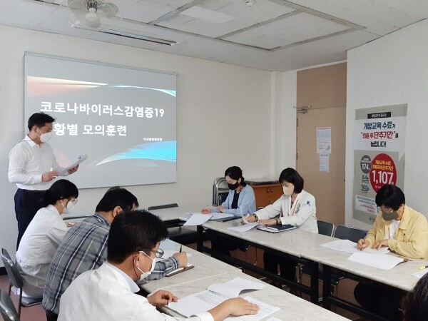 훈련은 중앙방역대책본부에서 마련한 ‘코로나19 상황별 모의훈련’시나리오를 기반으로 구성원별 역할을 분담하고 코로나19 유행 대응 상황을 확진자 발생 전 의심환자 발생 확진자 발생, 3단계에 맞춰 대응 체계를 중점적으로 점검했다.