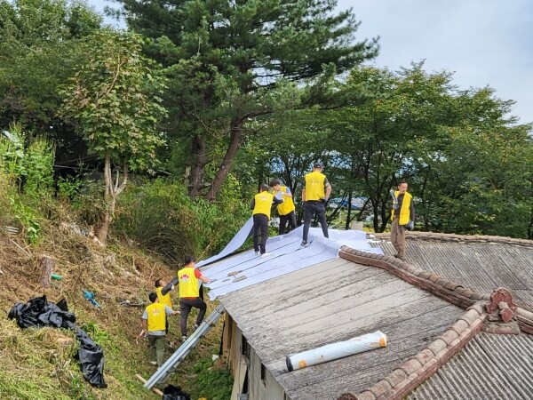 포천사랑나눔회 회원 20명이 영북면에 거주하는 홀몸 어르신 가정을 방문해 지붕 방수작업 및 도배, 장판 교체 등을 진행했다.