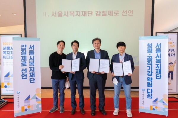 서울시복지재단 김상철 대표이사는 “상호 존중하고 신뢰하는 조직을 만들고자 노사가 힘을 합쳐 ‘갑질근절’ 선포식을 가졌다”며 “서울시복지재단의 전체 임직원이 합의, 합심해 직장 만족도와 업무 충성도, 시민을 향한 선한 영향력 등이 높아지는 ‘위대한 일터’를 만들어갈 것으로 기대한다”고 말했다.