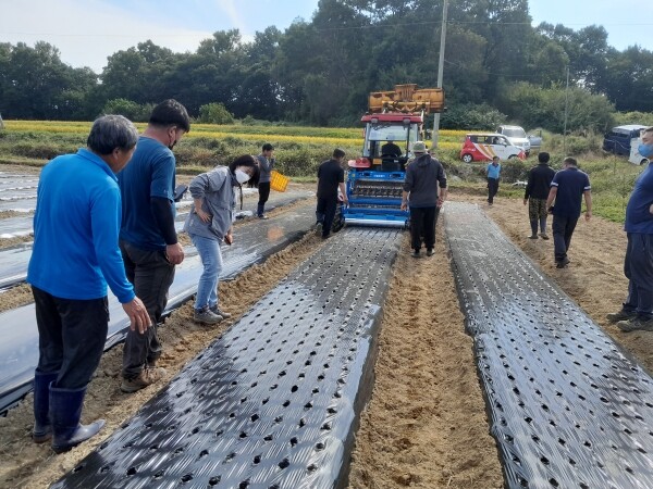 이날 시연회에서는 새로 도입한 마늘 파종기를 농가에 선보이고 재배 형태에 맞는 마늘 파종 시연이 진행됐다.