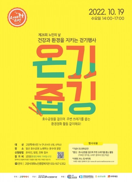 고양시대화노인종합복지관 최윤정 관장은 “다양한 세대가 참여하며 환경보호라는 공동의 사회적 책임을 즐겁게 풀어내는 시간이 될 예정”이라며 “많은 주민이 노인의 날을 축하하며 공동체의 의미를 새기는 시간이 되기를 바란다”고 전했다.