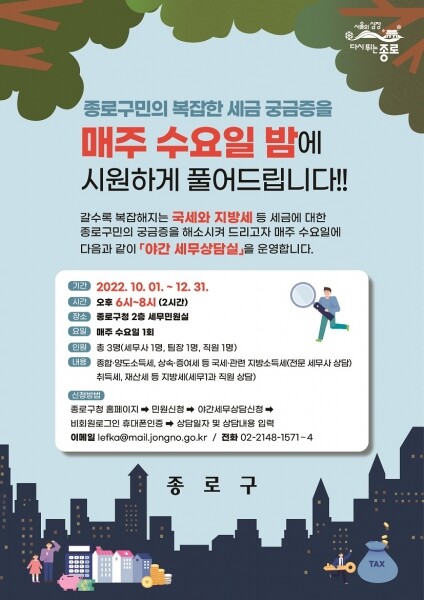 대상은 종로구민과 관내 사업자이며 구청 누리집 또는 세무1과로 전화 신청하면 된다.