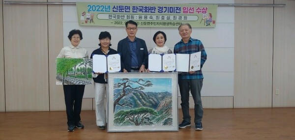 신둔면 한국화반은 백희자 강사님의 지도로 해마다 경기미전등 공모전에 참가하고 수상실적을 올리고 있으며 올해는 지난 8월에 참가해 9월에 양평군립미술관에서 10일간의 전시회를 마치고 오늘 수강생들과 함께 수상을 격려하고 치하하는 자리를 마련했다.