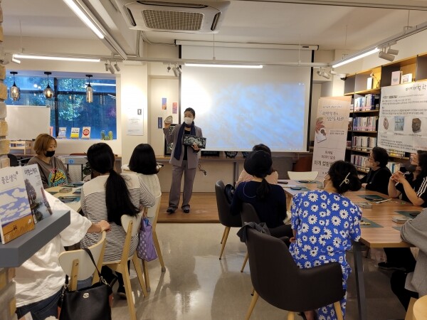 이번 북토크에서 김윤미 작가는 본인이 소장하고 있는 재떨이, 소반 등의 실물 작품을 보여주면서 자개 공예의 역사와 내용 등 예전 할머니, 어머니 세대의 가구로 활용되던 자개 공예가 현대에 와서는 어떻게 변화되고 발전했는지에 대해 자세히 소개했으며 이어서 자개 재료를 이용한 컵받침 만들기 체험으로 북토크를 마무리했다.