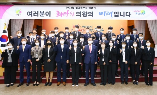 김성제 의왕시장은 “민선 8기 출범과 함께 다시 움직이기 시작한 발전 시계가 오늘 신규 공무원 임용으로 더욱 역동적으로 돌아가길 기대한다”며 “우리 의왕시가 명품도시로 도약할 수 있도록 항상 적극적이고 긍정적인 자세로 업무에 임해주길 바란다”고 당부했다.
