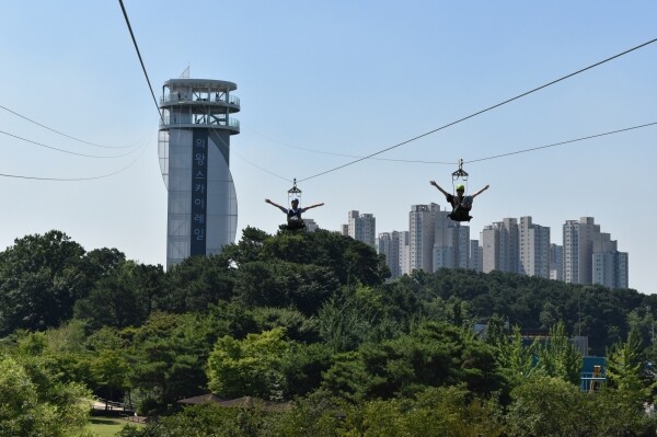 의왕스카이레일은 41m 높이의 15층 타워에서 도착지까지 350m를 시속 80km로 하강하며 아찔하고 짜릿한 스릴을 체험할 수 있는 의왕시 대표 레저 시설이다.