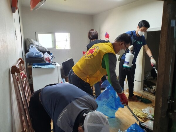 인창동 적십자봉사회는 인창동 행정복지센터가 협력해 복지취약계층 가구의 열악한 주거환경을 개선하기 위해 집 안 곳곳에 쌓여 있는 쓰레기를 치우고 비위생적인 방 내부 및 냉장고 등을 청소했다.